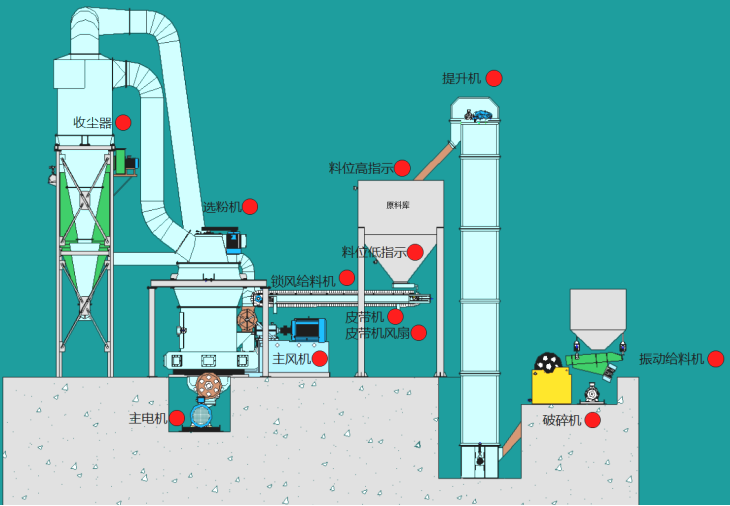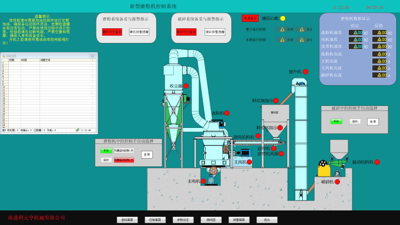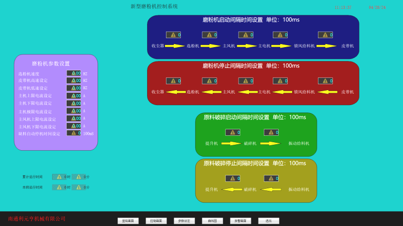 Când semnalul de control al centrului de moară este verde, selectați „Auto” în interfața de selecție manuală și automată a morii, când butonul „Auto” devine verde, faceți clic pe butonul „One cheie Start” din interfața de control automat pentru a porni echipamentul, iar echipamentul va porni în ordinea de pornire. Când faceți clic pe butonul „O singură oprire a cheii”, toate echipamentele vor fi oprite în ordinea de închidere.