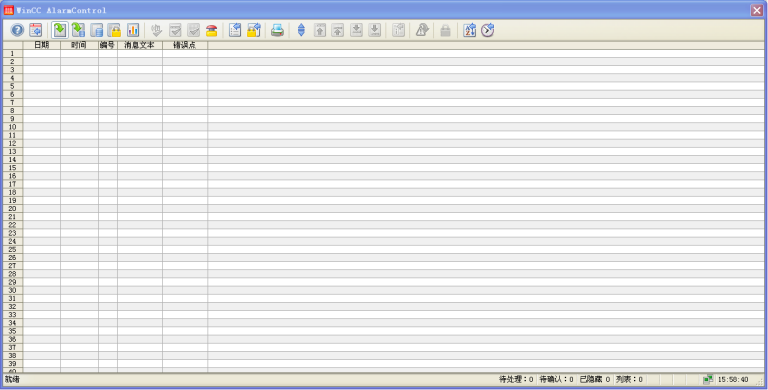 Acest ecran este utilizat în principal pentru a afișa informațiile de alarmă ale dispozitivului și pentru a stoca aceste informații pentru vizualizarea ulterioară. După cum se arată în figură, toate alarmele au timp de alarmă, timp confirmat, mesaj de alarmă și timp de sfârșit de alarmă. Când apare o alarmă, operatorul îl poate selecta făcând clic pe el și apoi apăsați butonul „Confirmat” pentru a confirma alarma, iar va fi afișat ora confirmată de alarmă. Este important de menționat că alarmele pot fi confirmate numai atunci când apar. Dacă există prea multe alarme pentru a fi afișate pe un singur ecran, ecranul poate fi răsturnat folosind butoanele „Flip Up” și „Flip Down”.